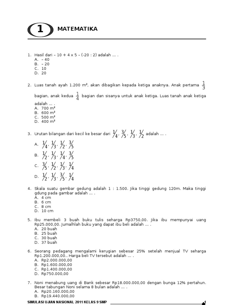 Matematika Simulasi Ujian Nasional 2011 Kelas 9 Smp 1